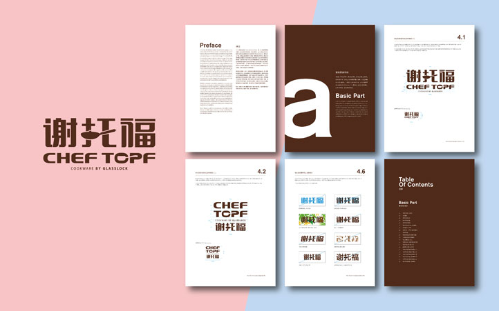 3、LOGO的核心識別是融入自己品牌設計中的廚具,這樣的一個核心識別是表示著強烈的產品屬性,讓消費者在認知品牌時能理解品牌所經營的產品;也體現了謝托福品牌骨子里的一種專注,用專注去打造精致的產品,用精致的產品釀造幸福的生活。