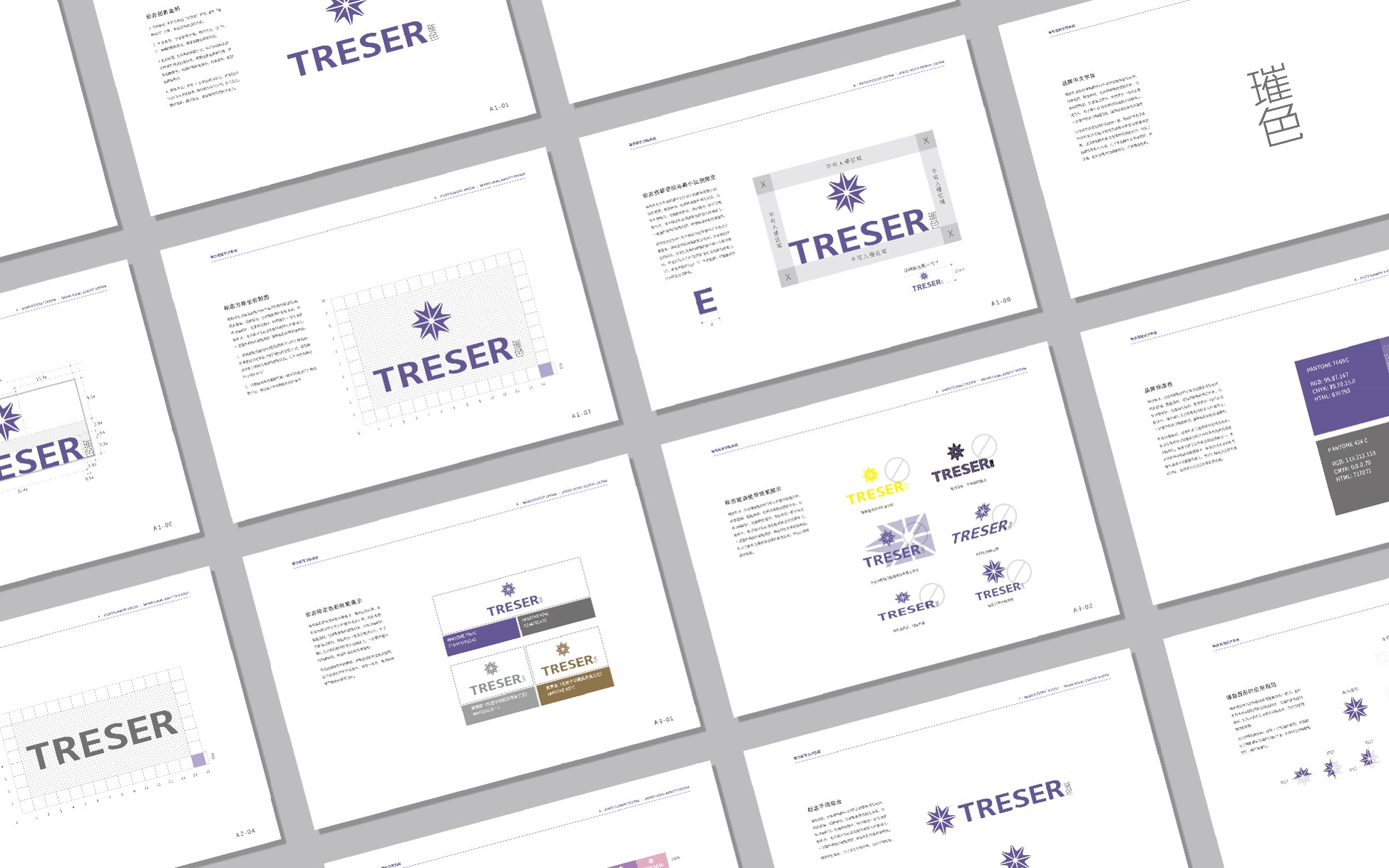 3、 色彩表現:灰白紫的搭配方式,與行業的科技藍、天然綠形成強烈差異性,而紫色象征高貴優雅,符合品牌調性;色調的飽和度適中,舒適柔和,彰顯品牌親和力。