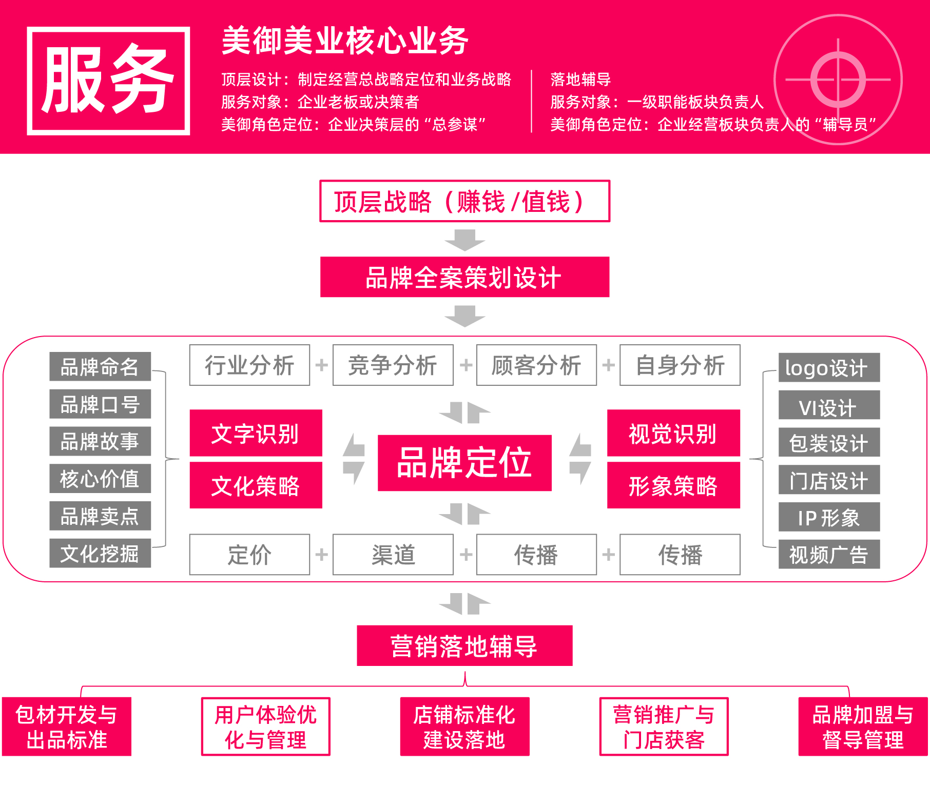 美御團隊在行業里深耕了17年,美御用品牌“年輕化”戰略體系為成長型企業,提供一站式品牌營銷咨詢方法,贏得客戶一致好評,我們希望客戶在充分了解美御的前提下進行合作,所以我們根據新客戶提出的常見問題做出解答。