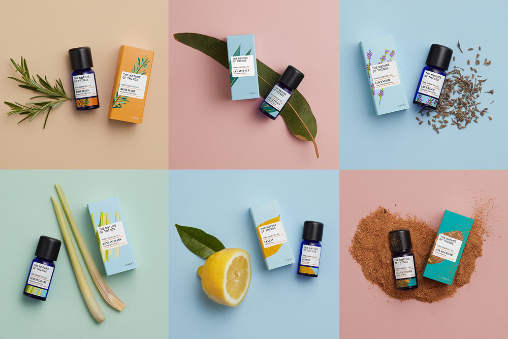 一套天然芳療精油包裝設計欣賞,瓶子采用藥劑瓶,給人以專業的感覺,標簽和外盒設計采用品類植物插畫和文字排版設計,給人一種天然簡潔專業的感受,體現出品牌在芳療精油行業的專業性。