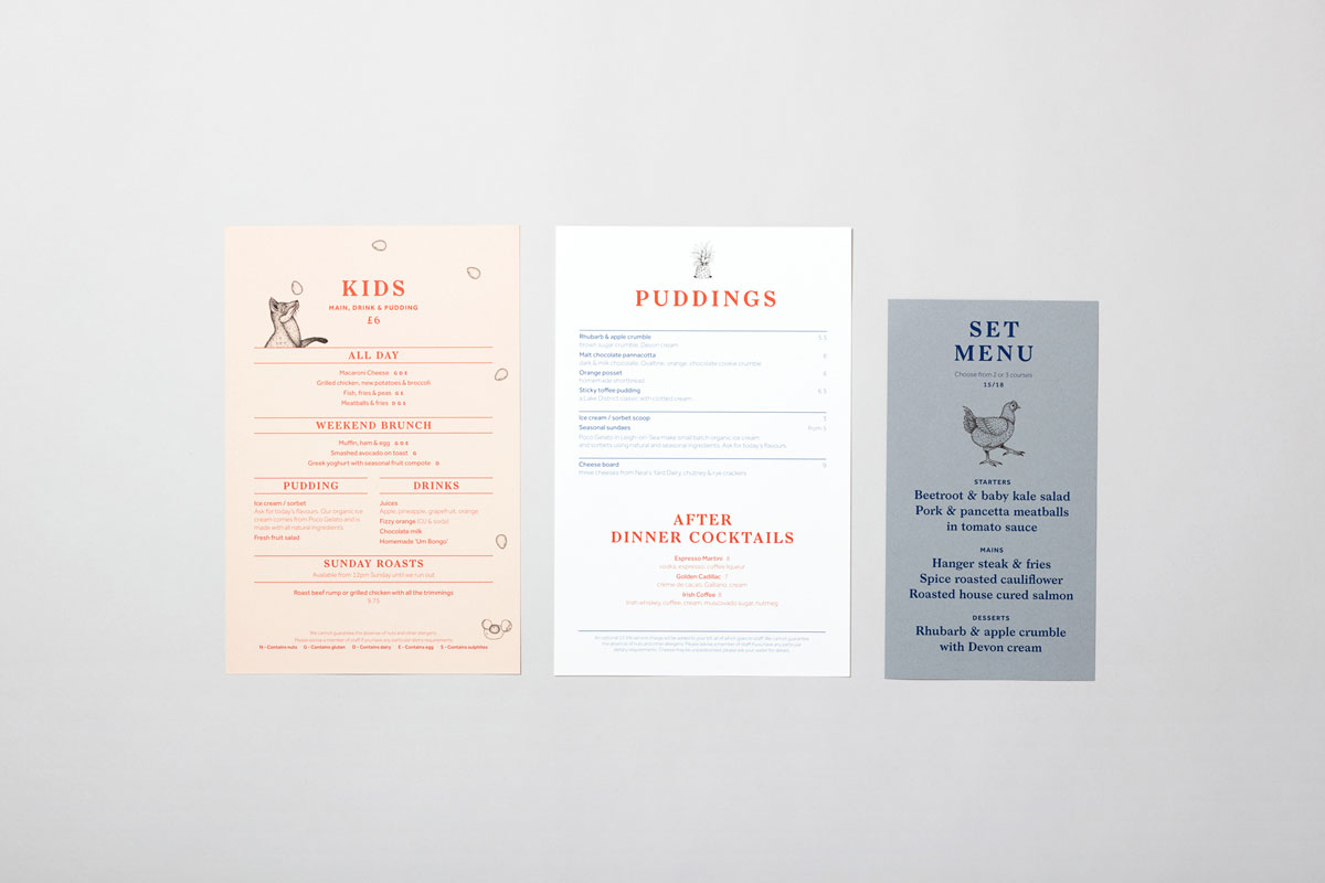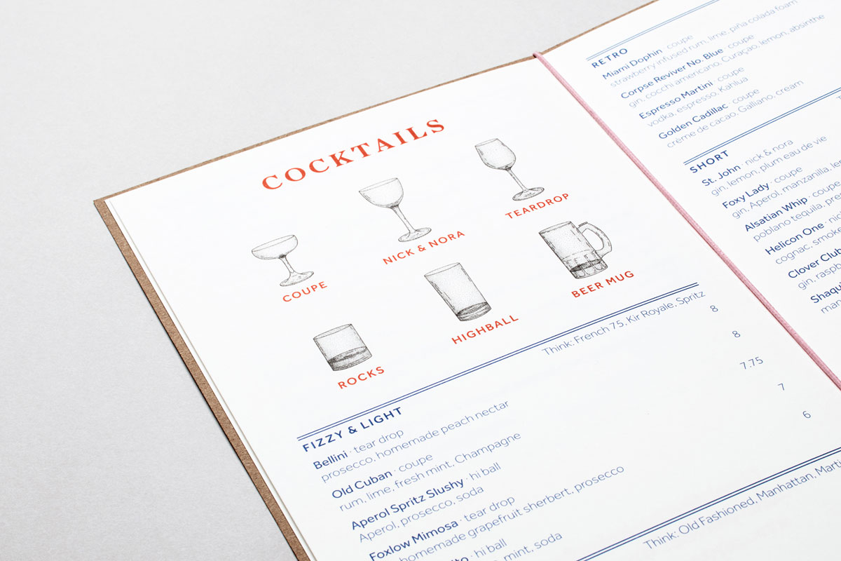 其中采用很多插畫,其風格讓人聯想到維多利亞時代的版畫,但更具現代感。這些插圖中加入了幽默元素,這使餐廳能夠更多地談論品牌文化的一面,而不會感到太枯燥。